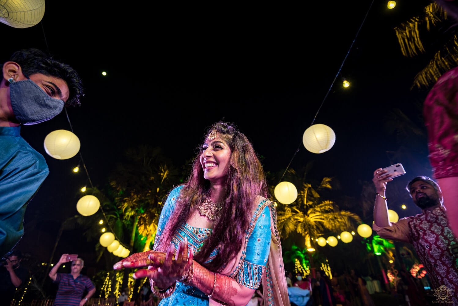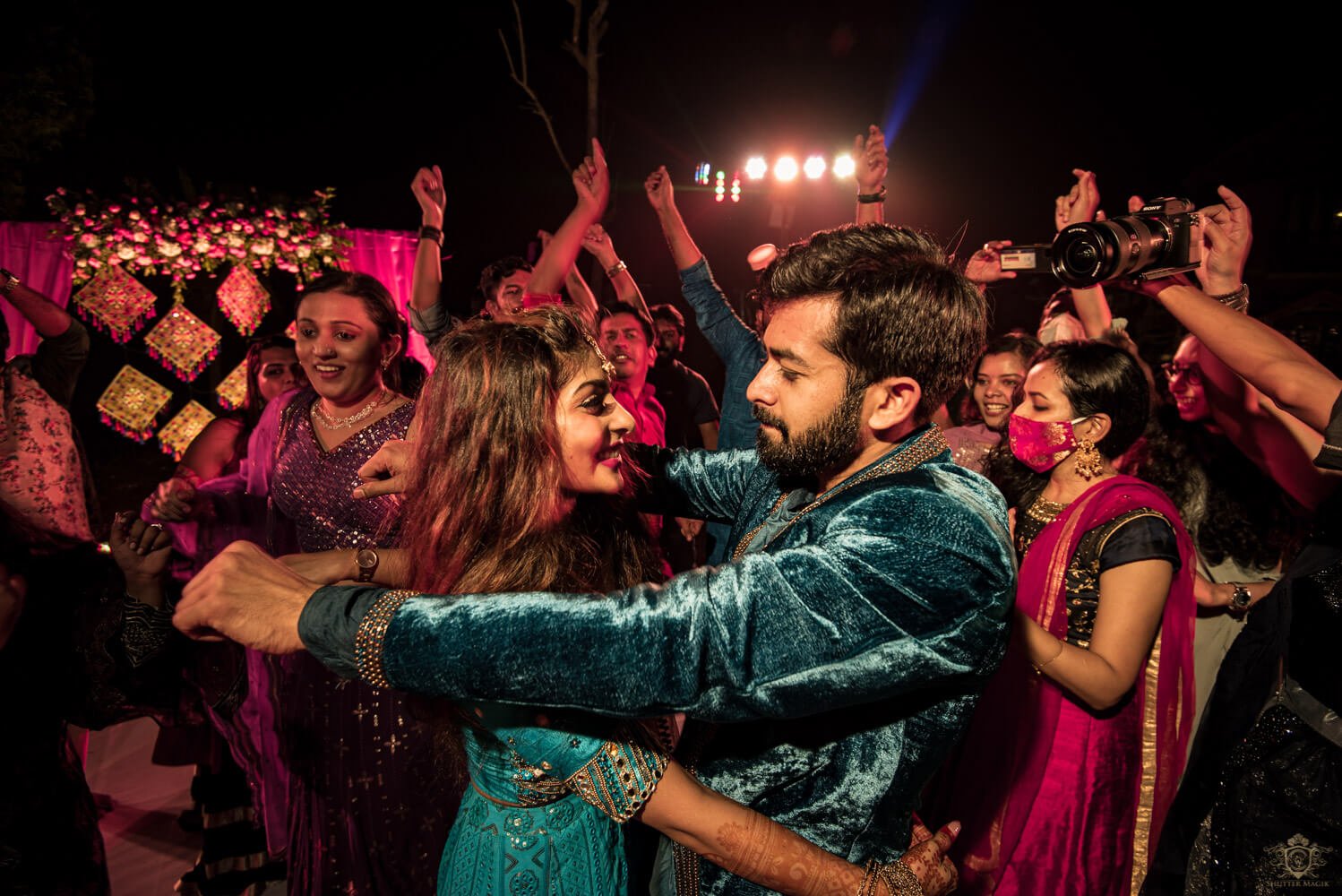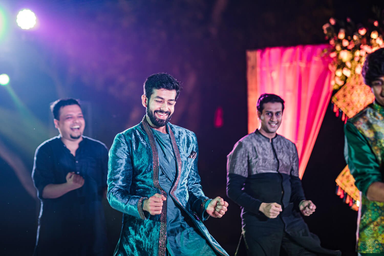 Adarsh is a clear non-dancer and Matangi is almost a pro at it but they both rocked the sangeet equally. Adarsh pulled his boots off for Matangi and that was our gesture of love for the night. Their friends and family rose to the beautiful occasion cheering the bride and groom, 90s style. We had a rocking night of nostalgic moments here and it was wonderful. Both looked extremely gorgeous in their cosy set up and the world was a shimmery disco ball for the night at least.
