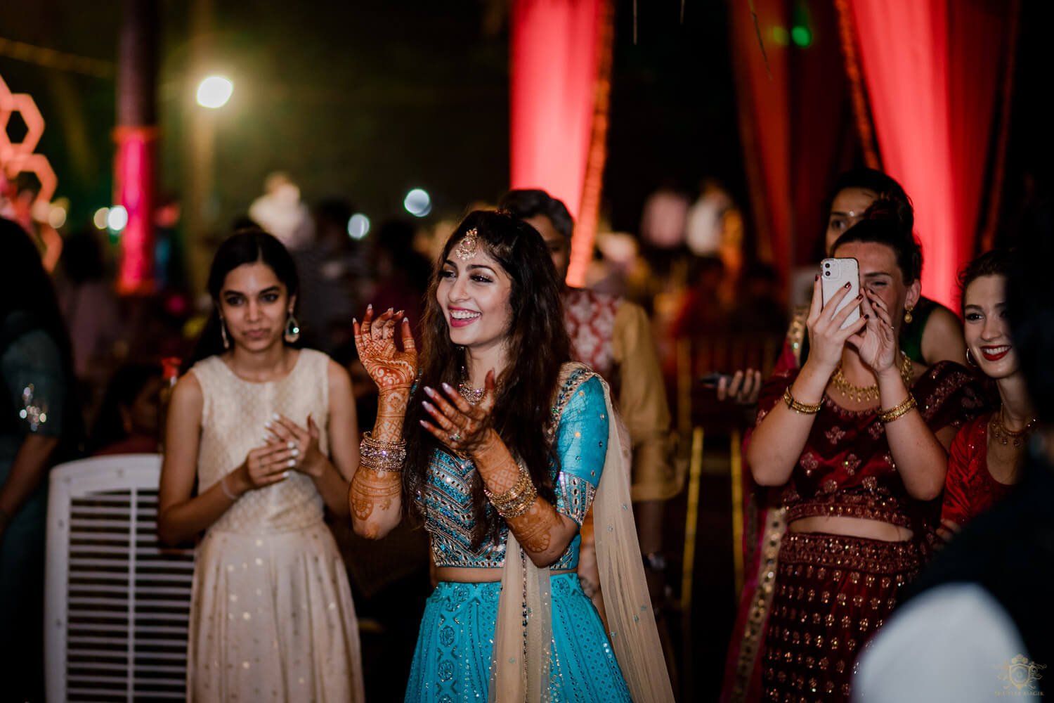 Mehendi is after all the high tea of a wedding. All the precious ones come together to adorn the precious one in the love of her lover. Chatter, food, henna and music. It was a perfect Indian wedding afternoon combination. Ladies singing, the bride smiling as bright as the afternoon sun, we were now just waiting for the wedding to happen. Maybe mehendis are trailers for the wedding drama. And this one gave us a good feeling ahead. But, sangeet first!