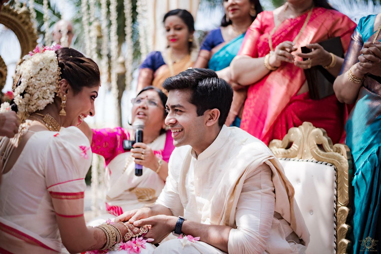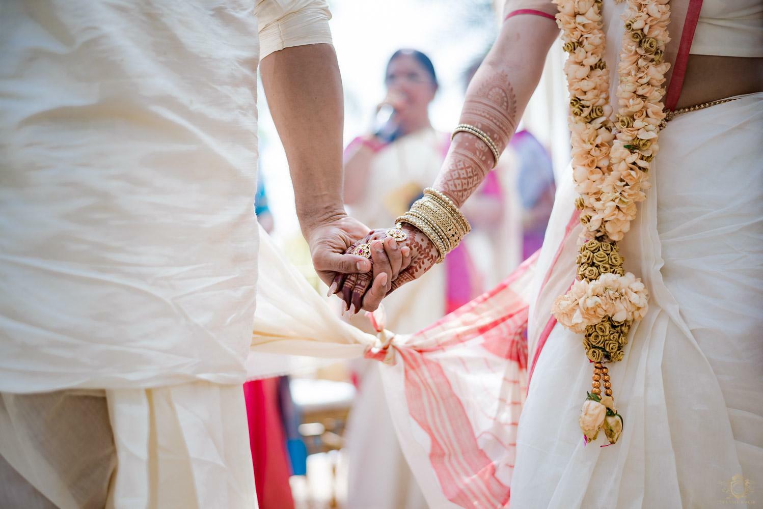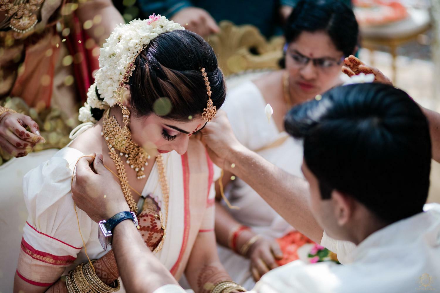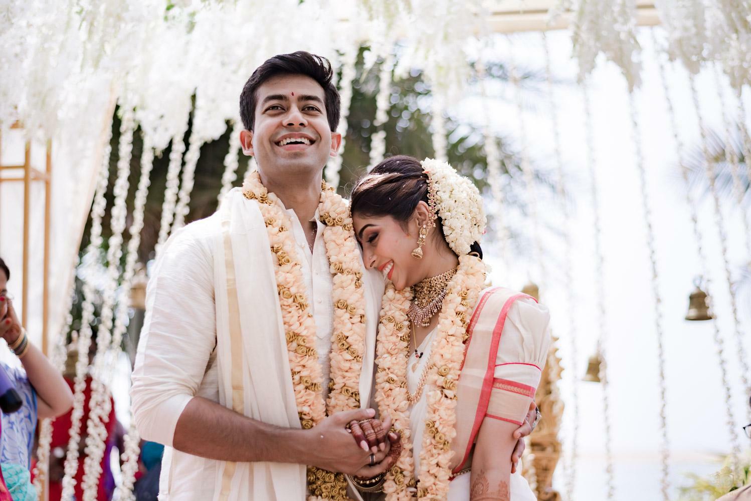 A wedding behind the backwaters surrounded by the grandeur of palm trees at the Poovar Island Resort. A two-day Tamil-Malayali traditional mix full of classic fun was all that Adarsh Matangi’s wedding was about. The wedding of Adarsh and Matangi was a visual retreat for our photographers. A couple so busy and lost in themselves is just always a treat for us wedding photographers. We couldn’t ask for anything more other than their genuinely happy faces and those spontaneous intimate moments. And we so genuinely enjoyed the candid ace level fun we could capture beside the trail of the coconut trees.