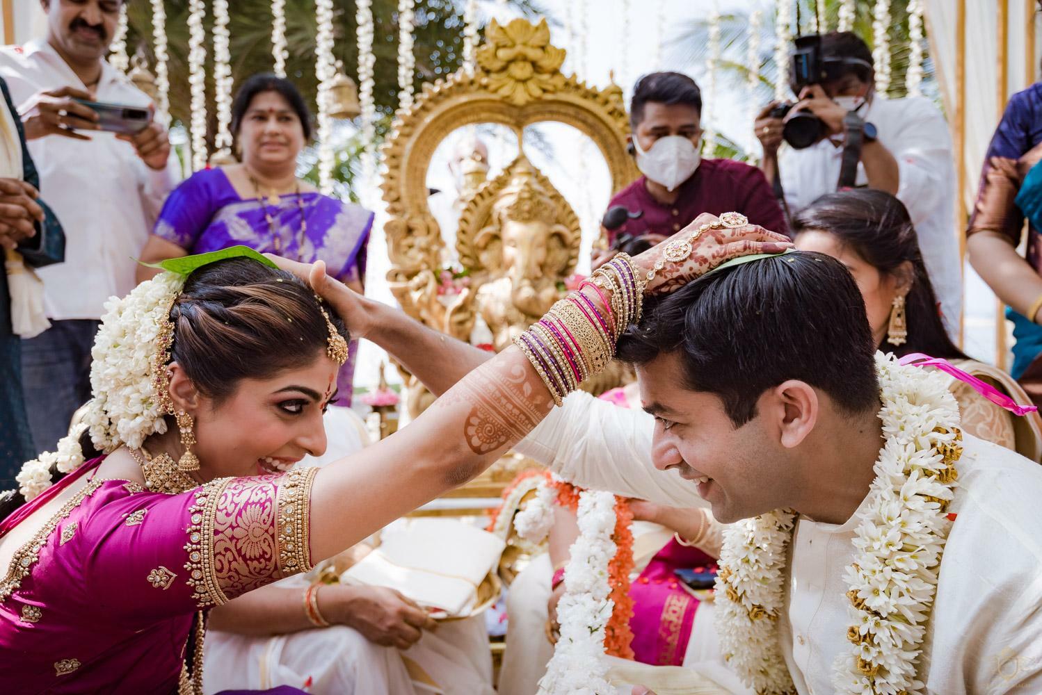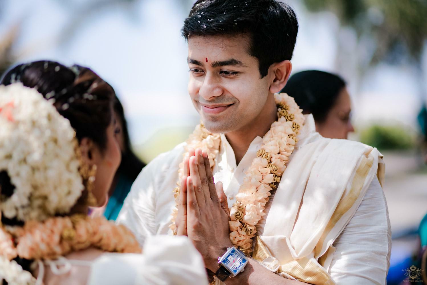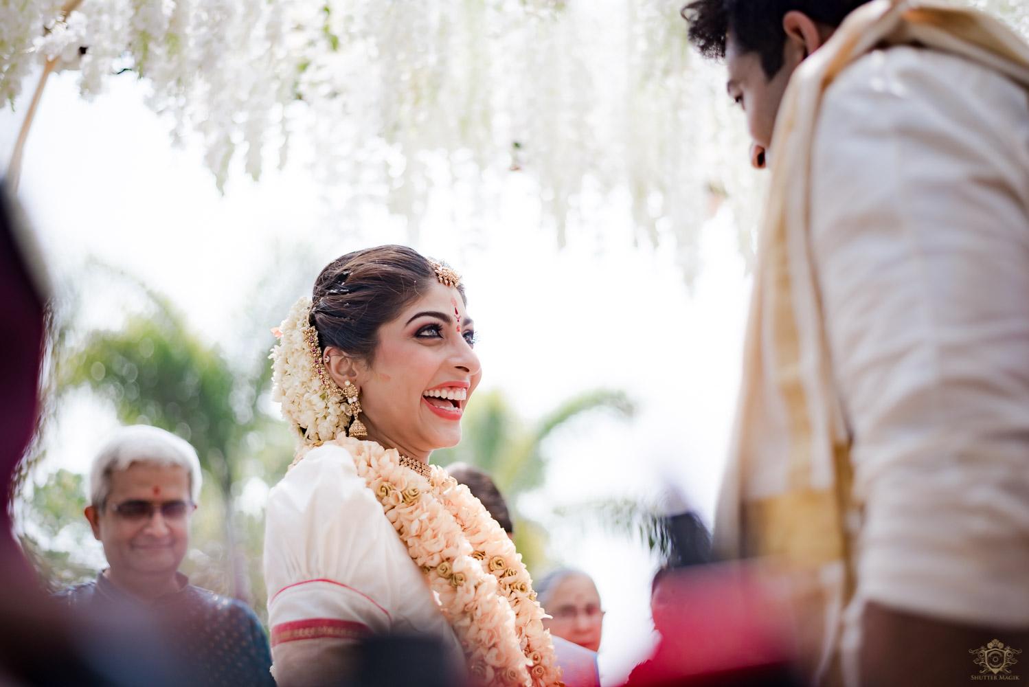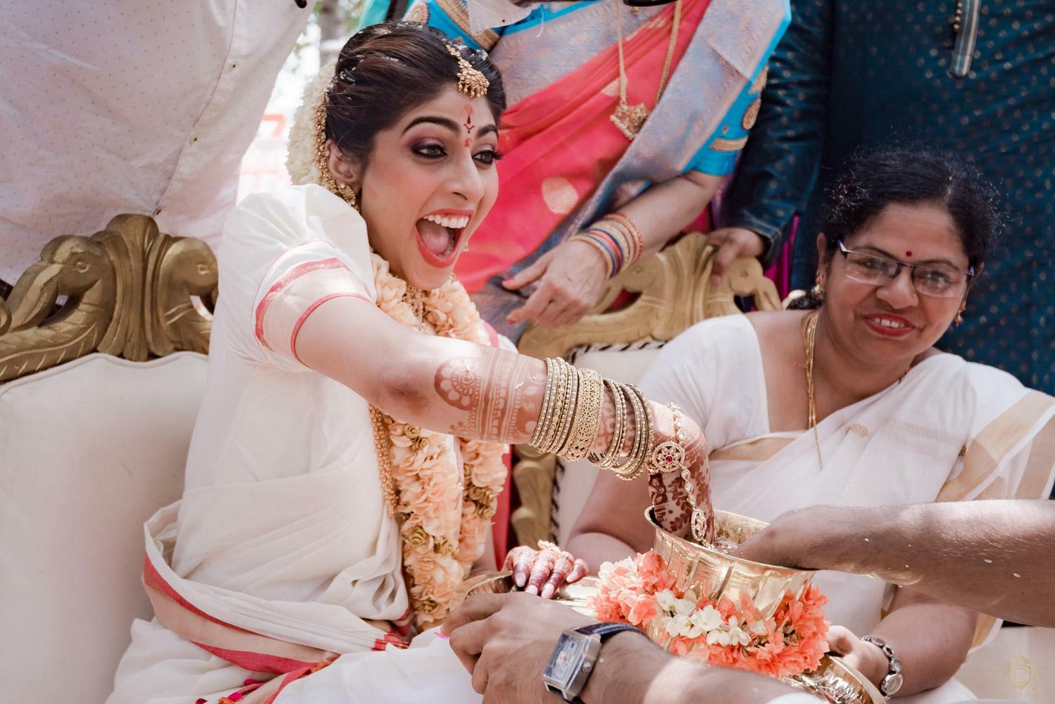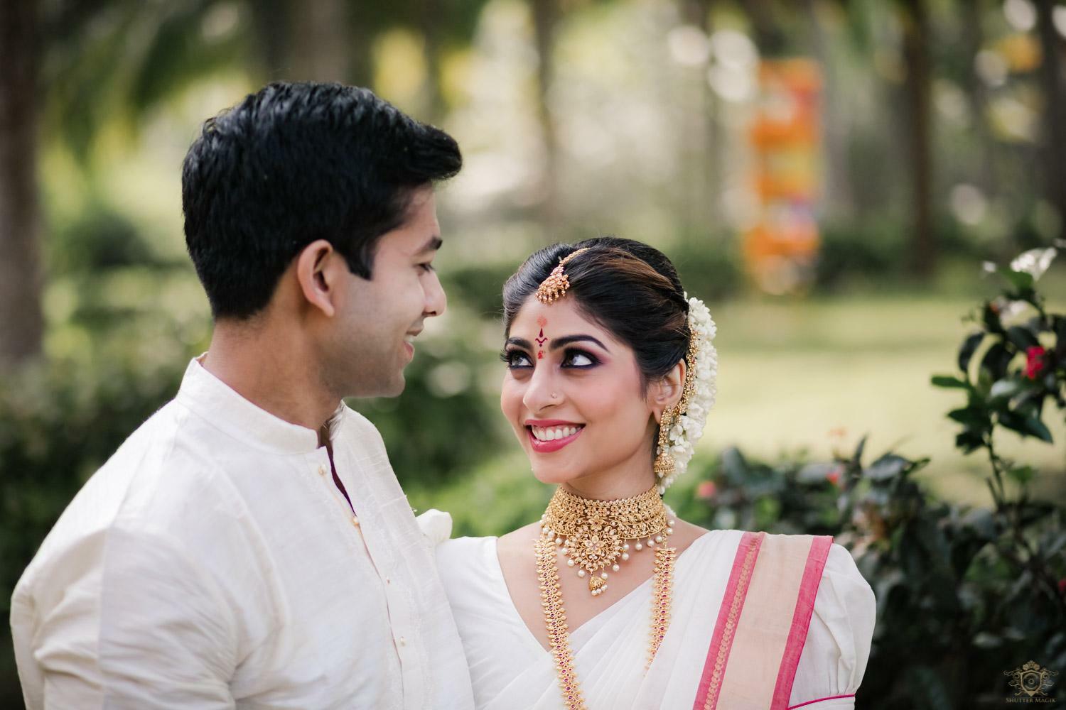 A wedding behind the backwaters surrounded by the grandeur of palm trees at the Poovar Island Resort. A two-day Tamil-Malayali traditional mix full of classic fun was all that Adarsh Matangi’s wedding was about. The wedding of Adarsh and Matangi was a visual retreat for our photographers. A couple so busy and lost in themselves is just always a treat for us wedding photographers. We couldn’t ask for anything more other than their genuinely happy faces and those spontaneous intimate moments. And we so genuinely enjoyed the candid ace level fun we could capture beside the trail of the coconut trees.