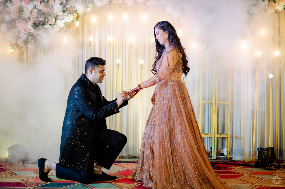 Ritwik and Ridhima’s Sangeet cum Engagement night was nothing short of magical—a perfect blend of tradition, music, and high-voltage energy. The evening began with a beautiful and intimate engagement ceremony, setting a heartfelt tone for the celebration ahead.