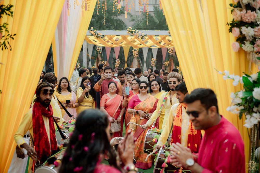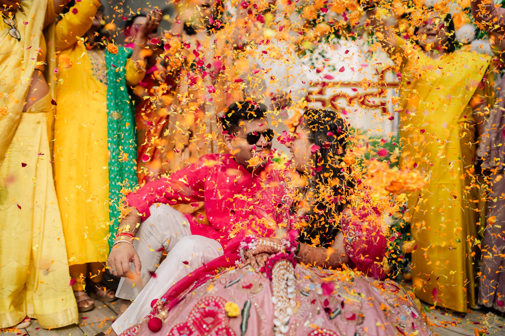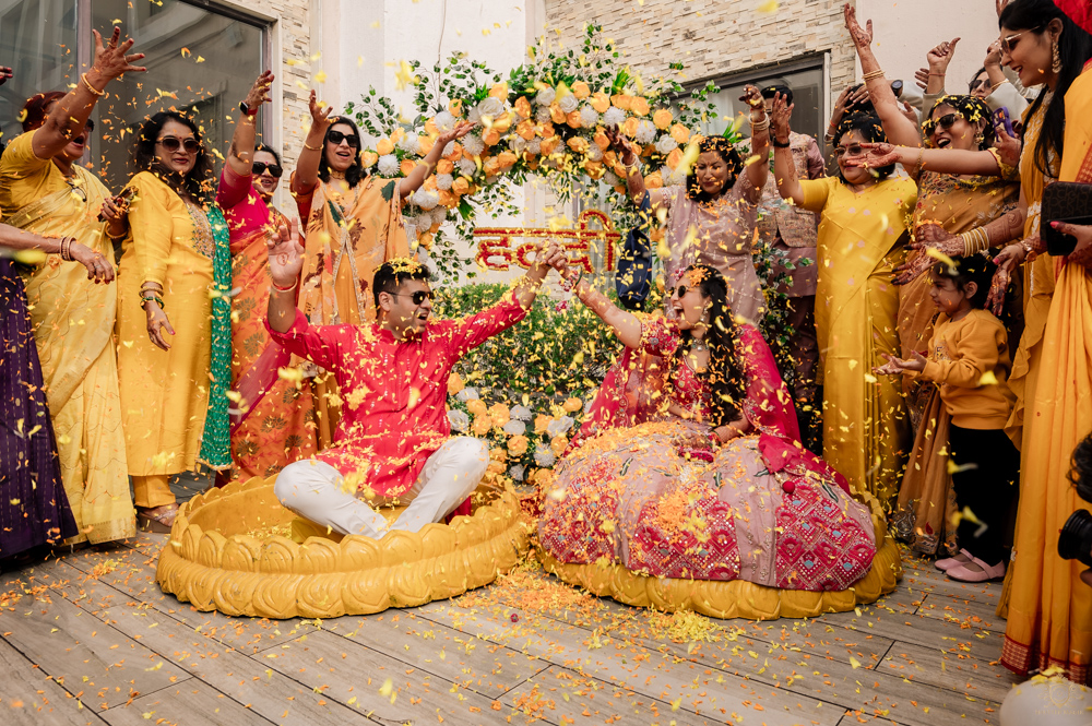 What followed was a beautiful phoolon wali Haldi, where guests showered the couple with flower petals, creating a dreamy, colorful atmosphere. The soft petals, laughter, and love in the air made for some truly picture-perfect moments.