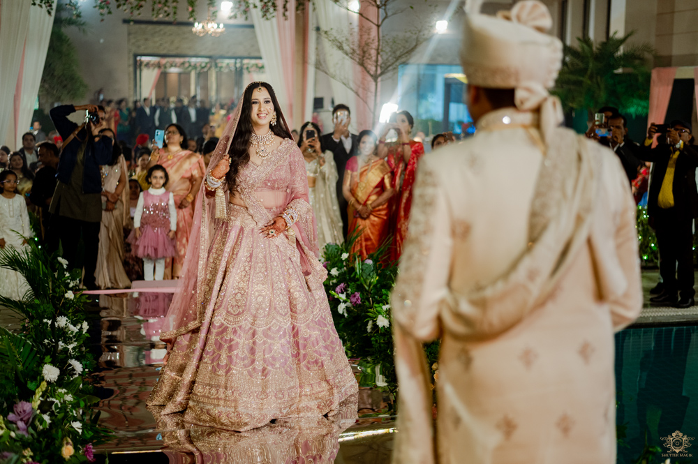 After a power-packed baraat, filled with high-energy dancing and celebration, the moment everyone had been waiting for arrived. Ridhima walked down the aisle with grace and poise, and the expression on Ritwik’s face said it all—a wide, heartfelt grin as he saw his bride for the first time in her wedding attire.