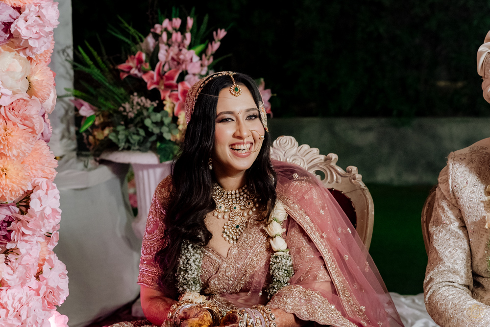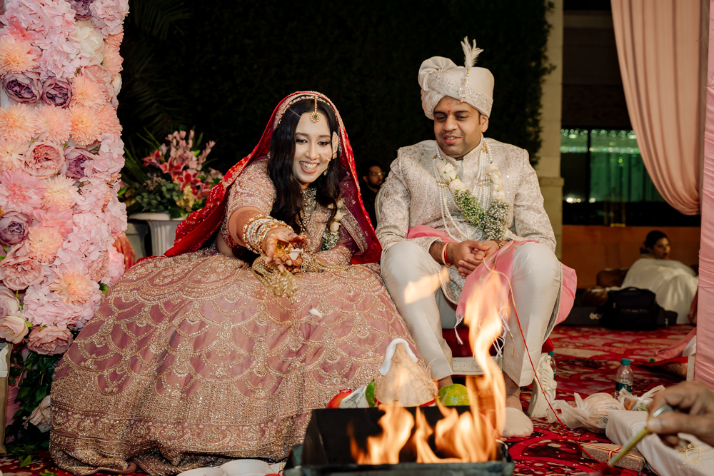The varmala ceremony was full of playful smiles and heartfelt emotions, setting the tone for the sacred pheras that followed. Though the wedding rituals took place late into the night, the joy didn’t wane for a second.